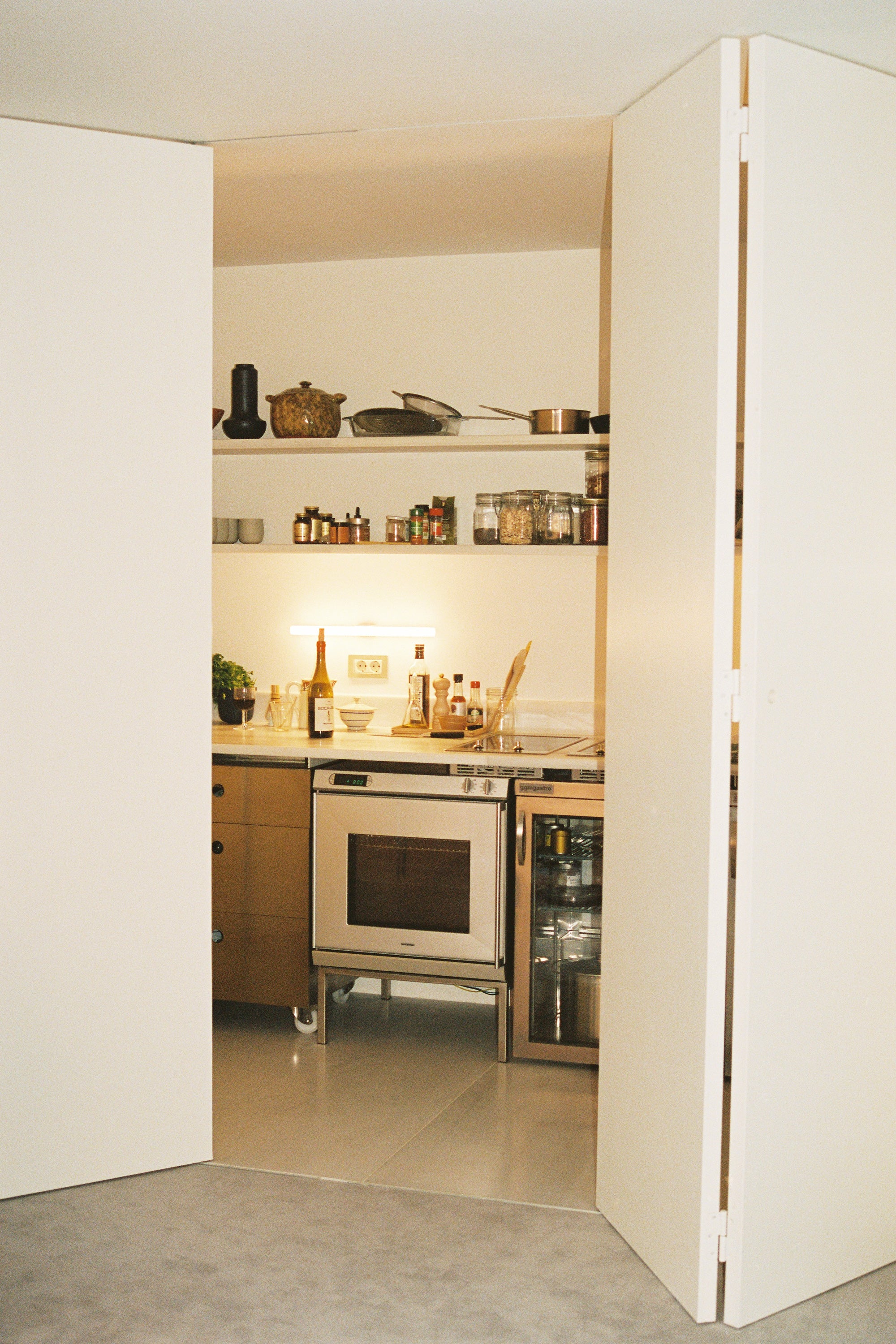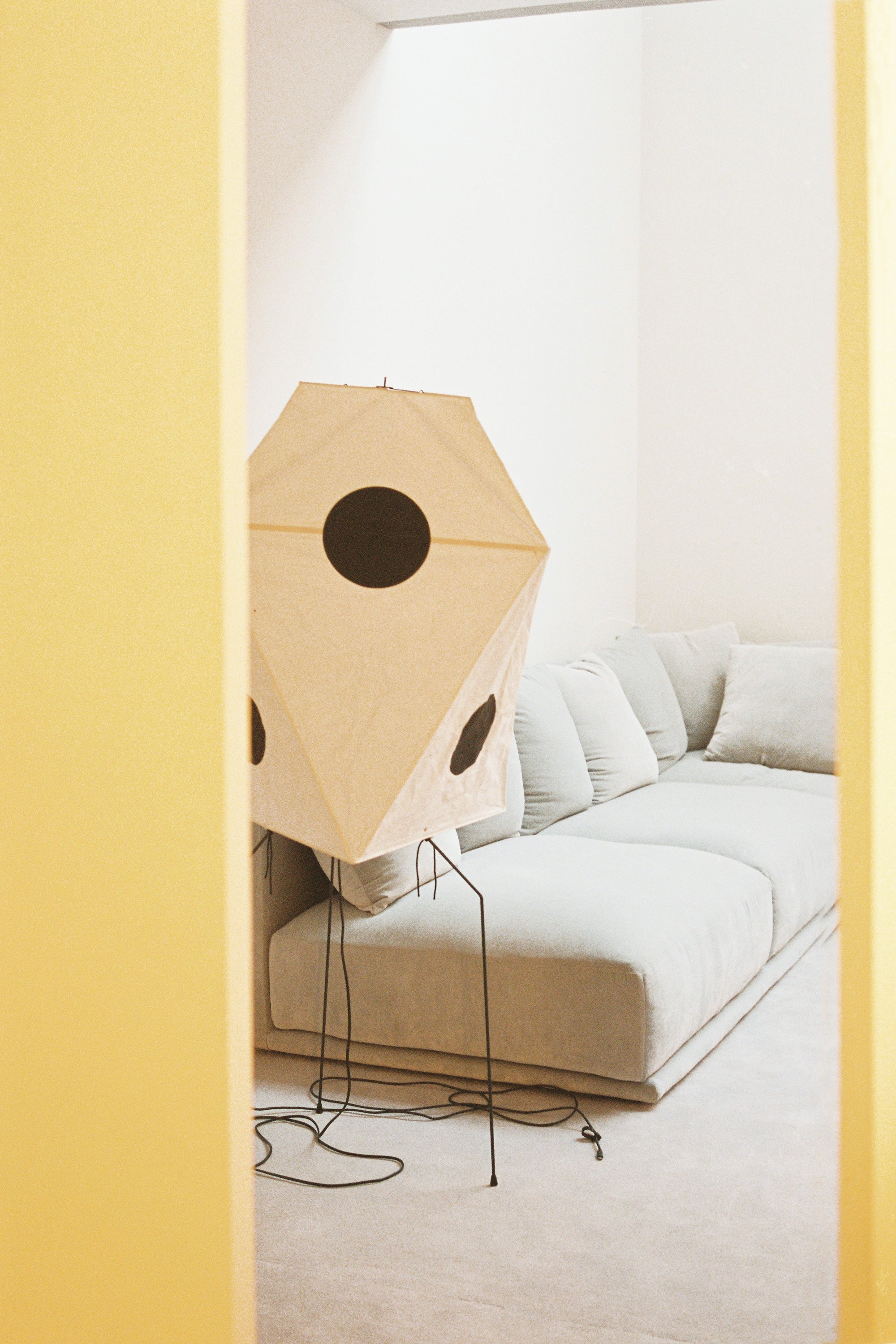 – Very spare, a mattress on the floor, a paper Noguchi lamp, another lamp for reading and two paintings.