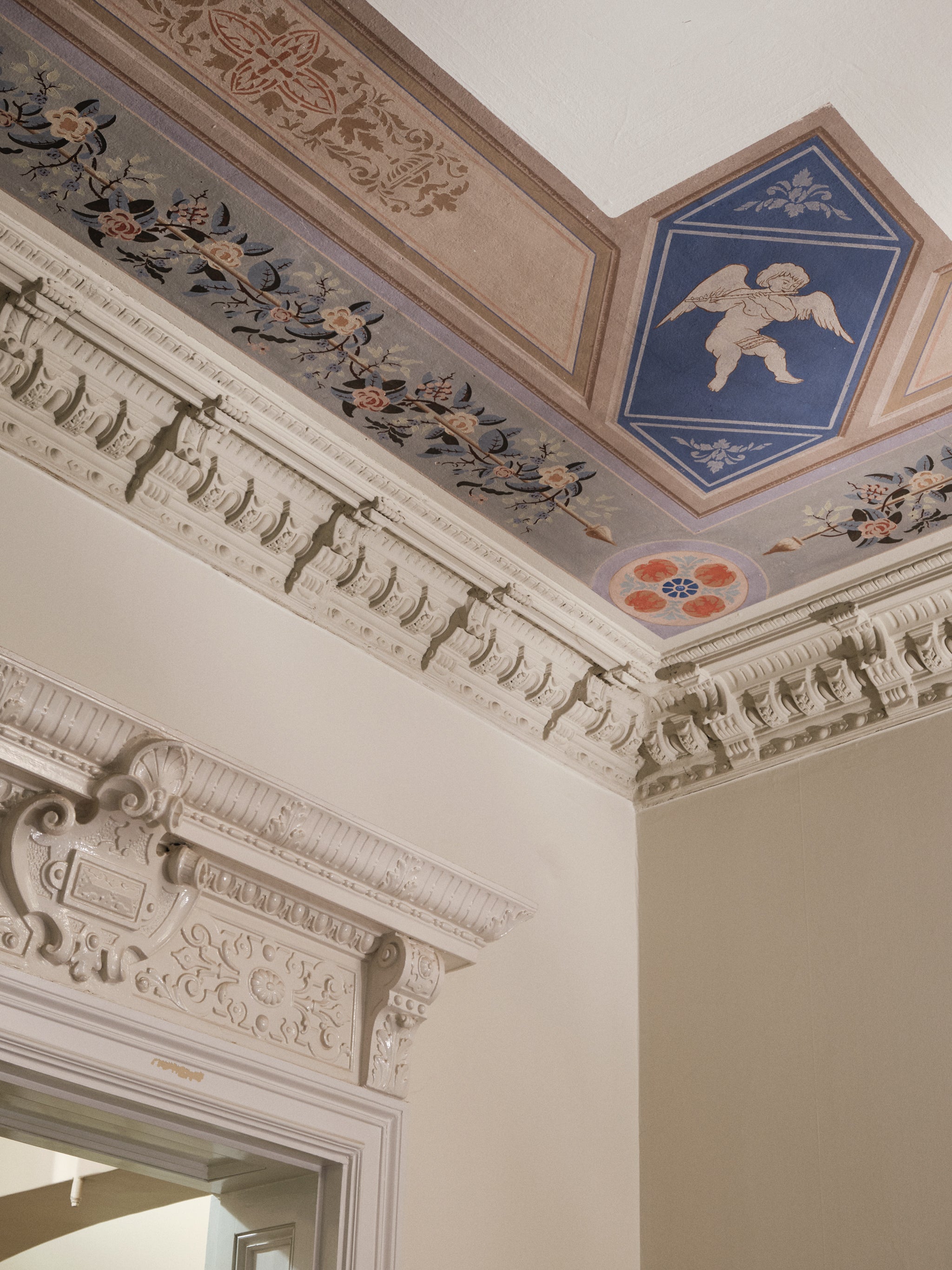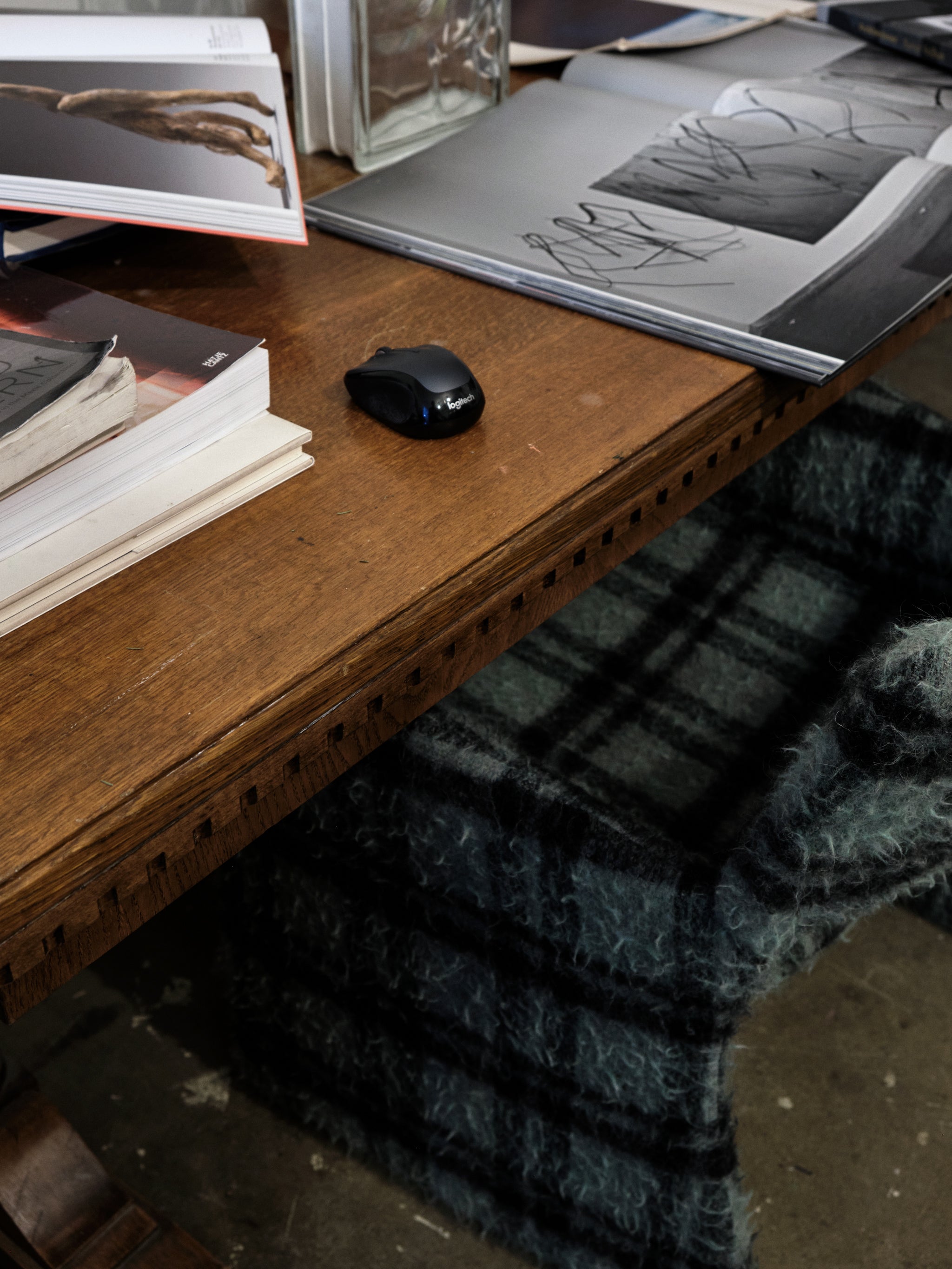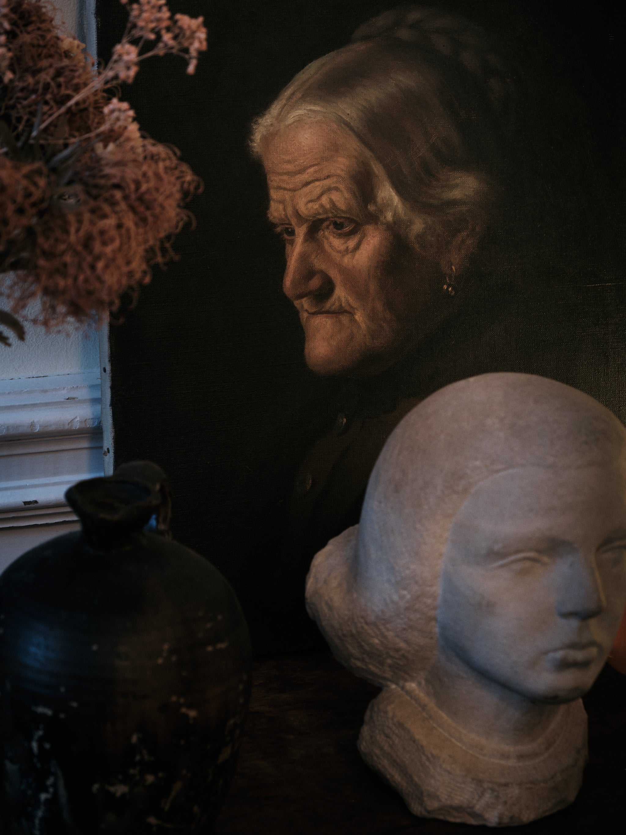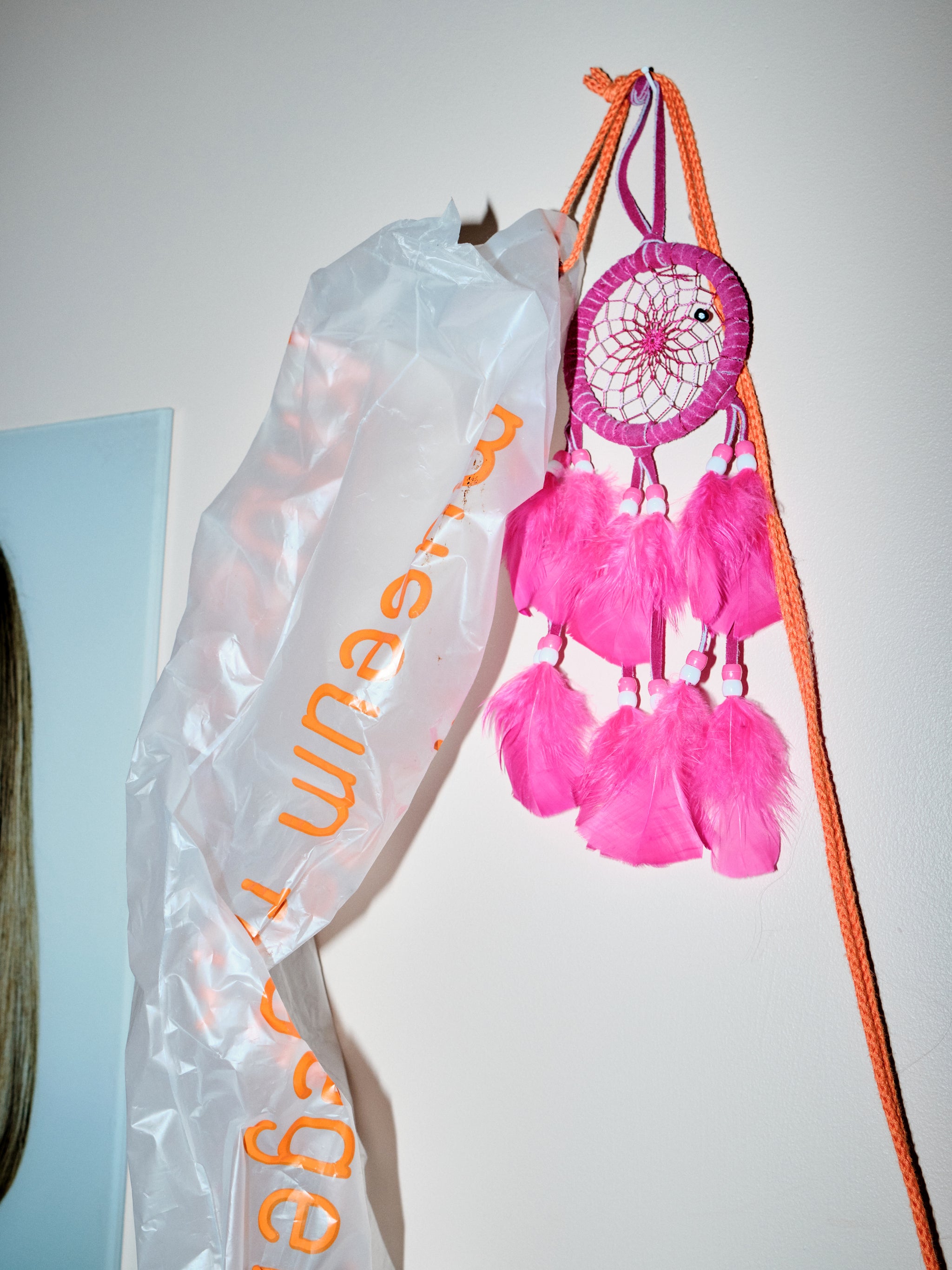 – As often as possible a fire, piles of books, a very low bed so that my dachshund can climb up and down, a hairy bench that always reminds me of rod Stewart hair, paintings in celling that I love starring at, some stuffed birds three paintings of the horizon and two works from Carsten Höller that he made from my daughter’s old pet collections of butterflies.