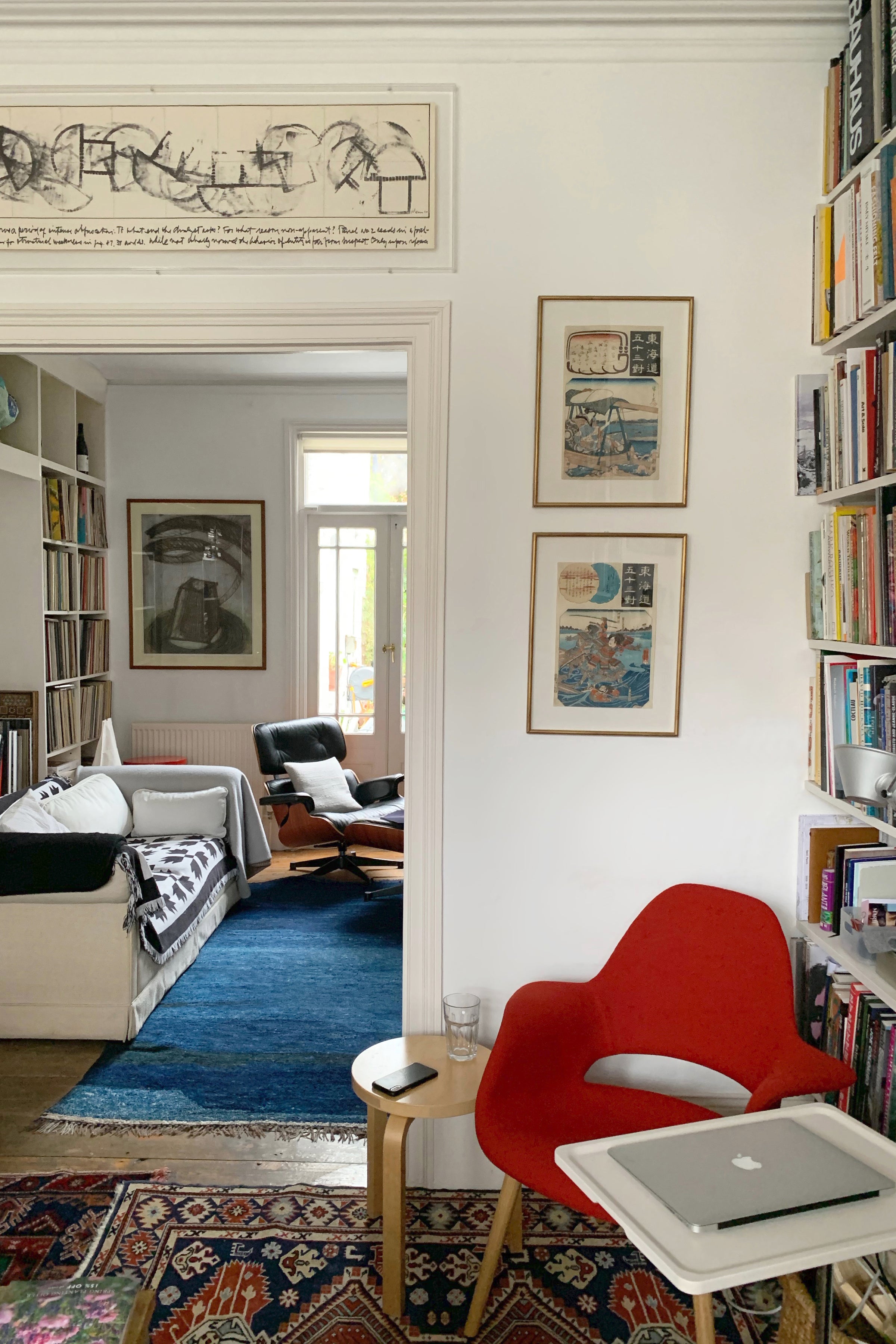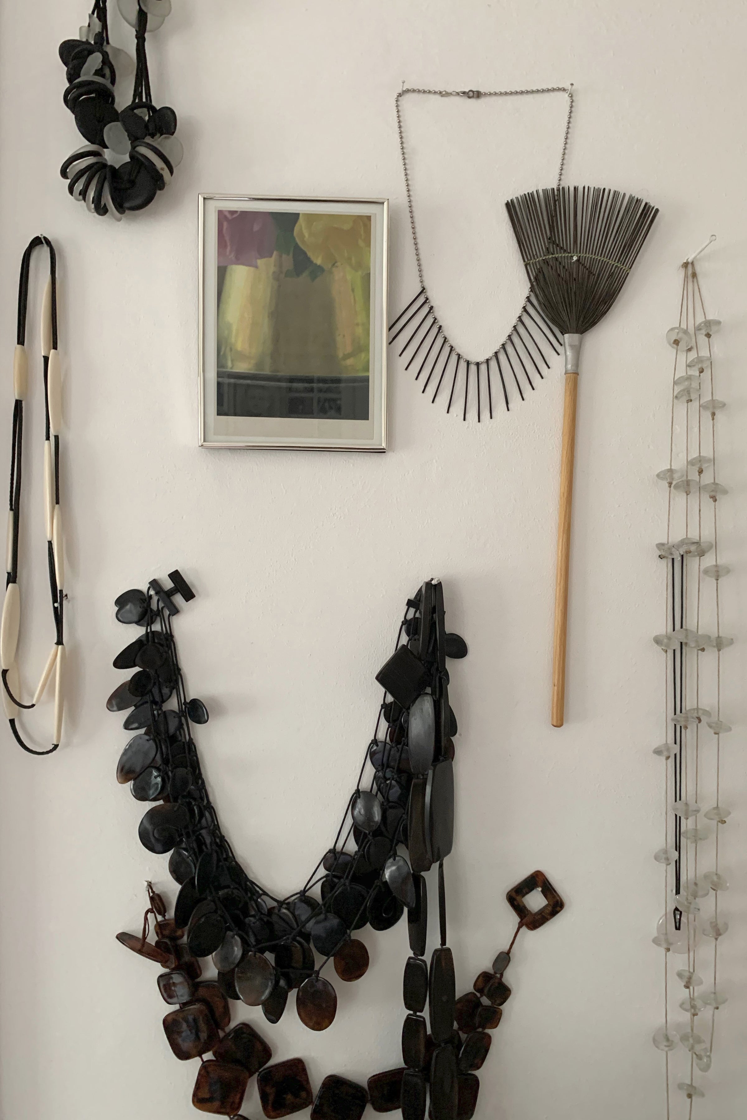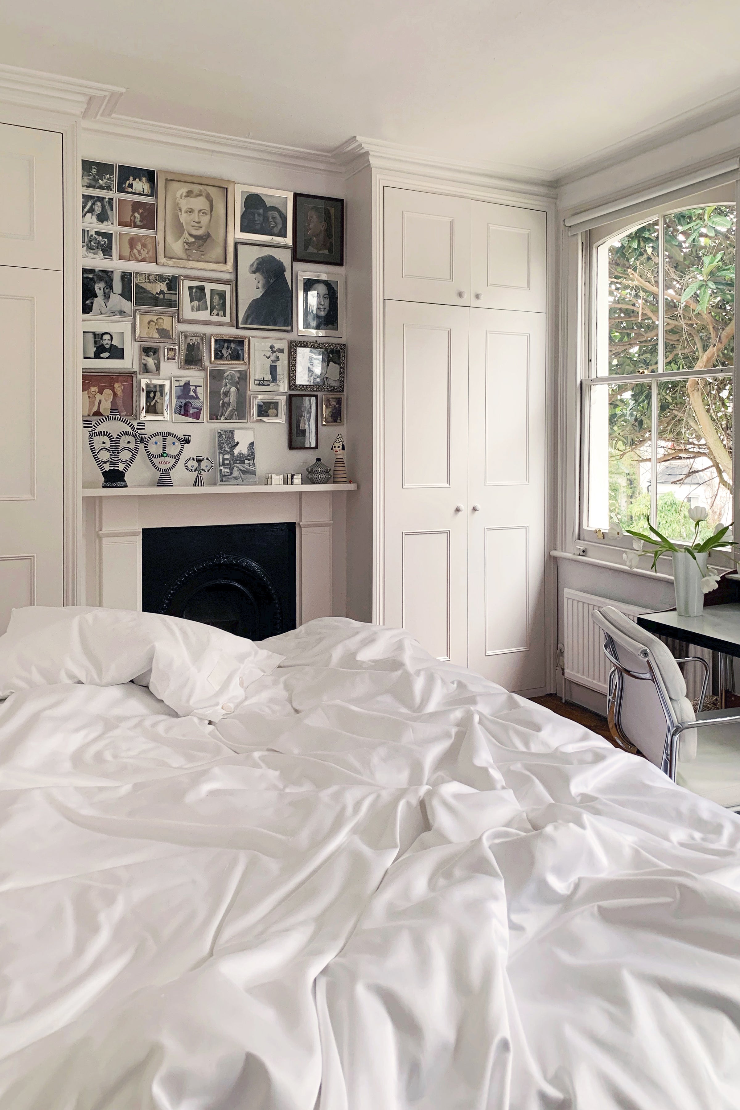 – Our bed looks out to a magnificent Loquat tree my mother planted many years ago that blossoms at Christmas and gives us fruit in the summer. I have a wall of family photos, I like to see them when I wake up. There is a fireplace which is nice to have on winter days. On the other side is a wall with paintings, jewellery and memorabilia that are hung in a random way. I like the narrative.