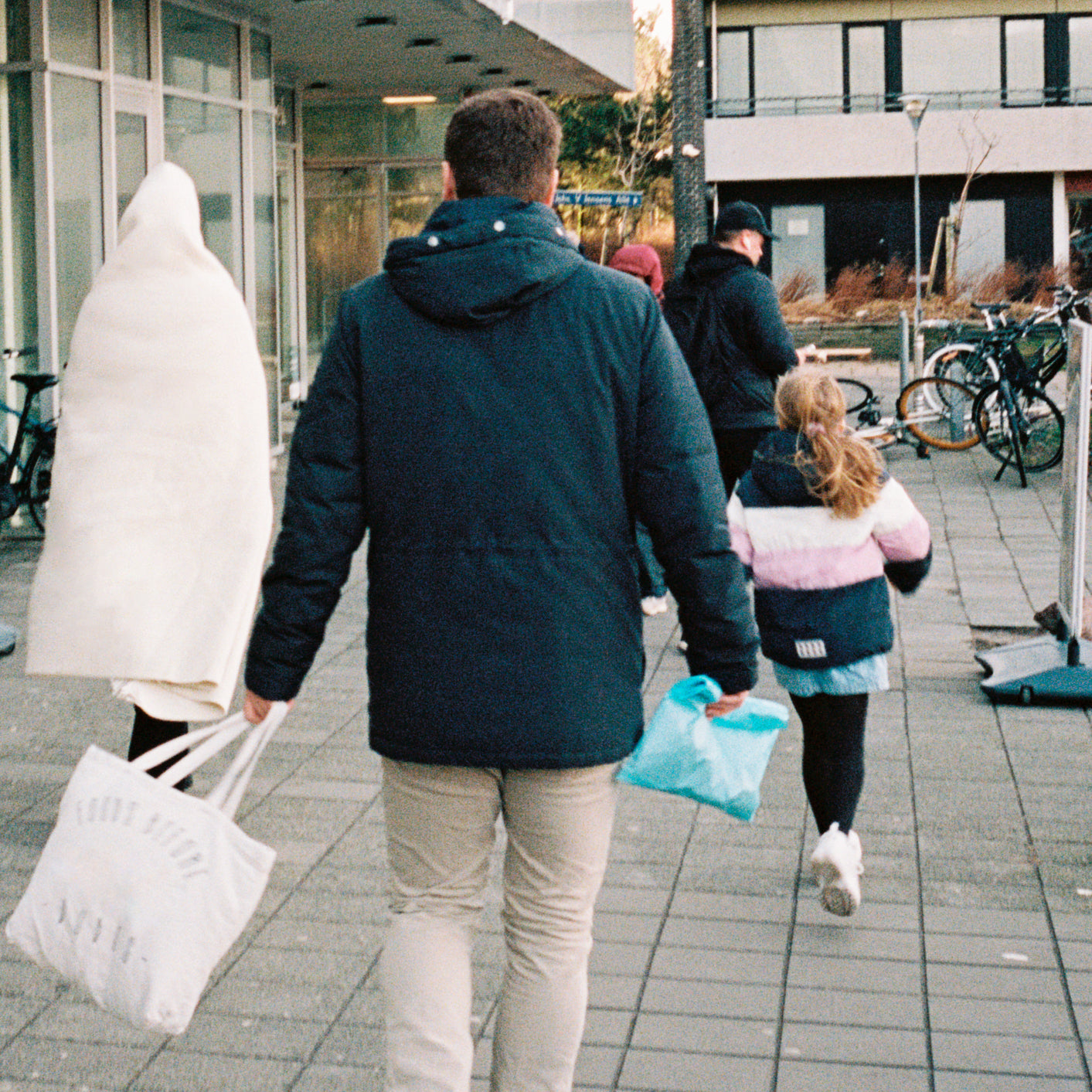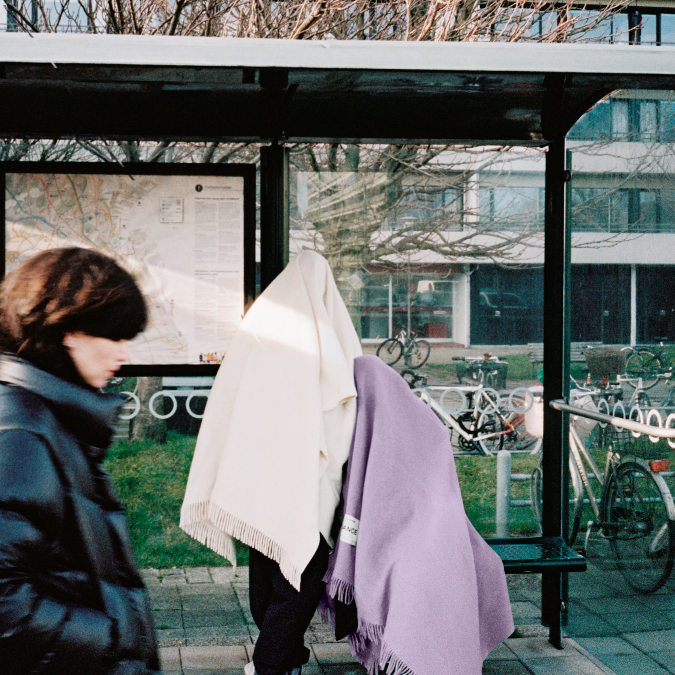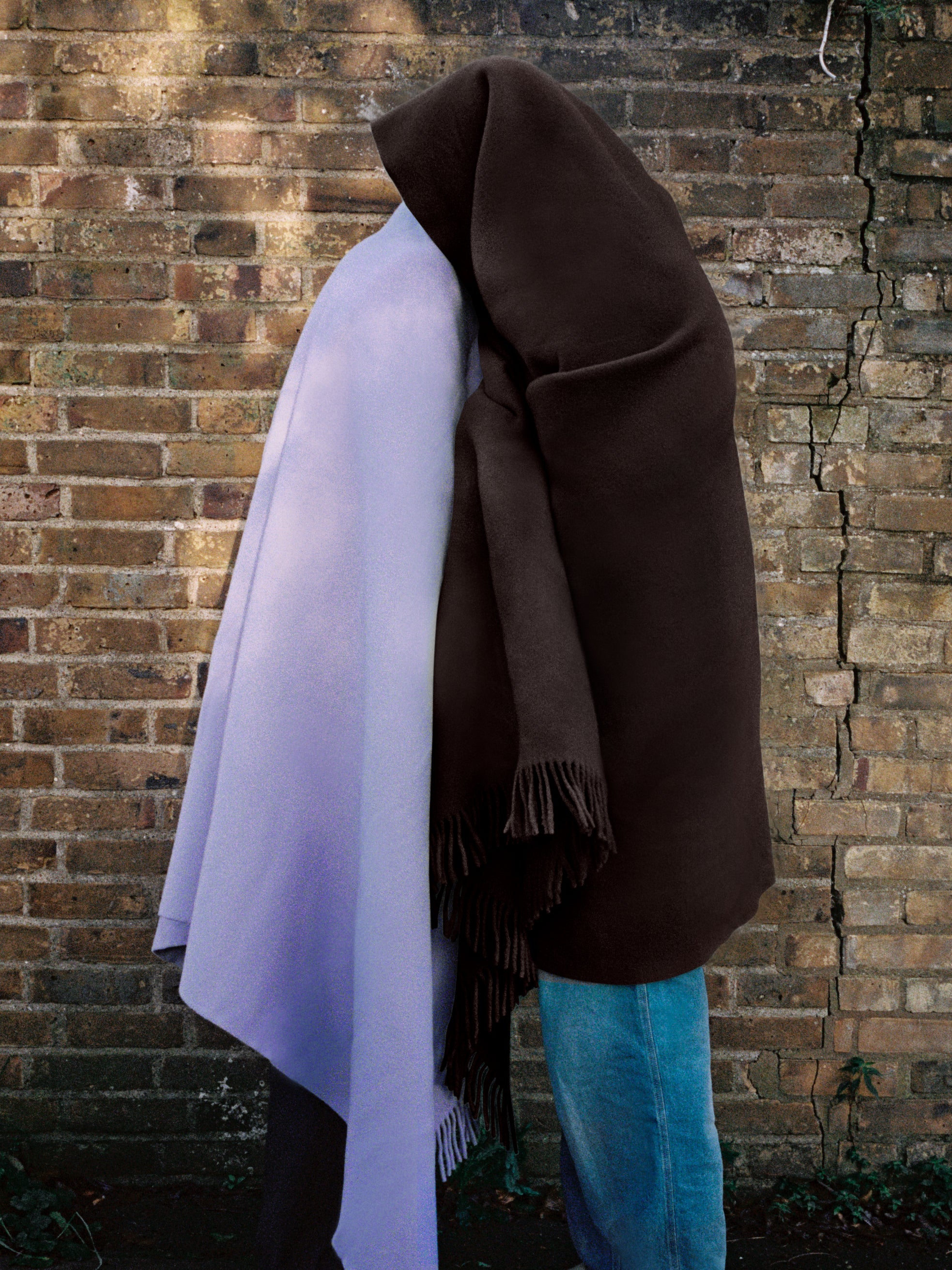 To celebrate the launch, Magniberg invited a friend of the brand, British photographer Daniyel Lowden, to document the collection. His images have a darkly humorous quality, depicting ghost-like figures wrapped in blankets, wandering around the city.