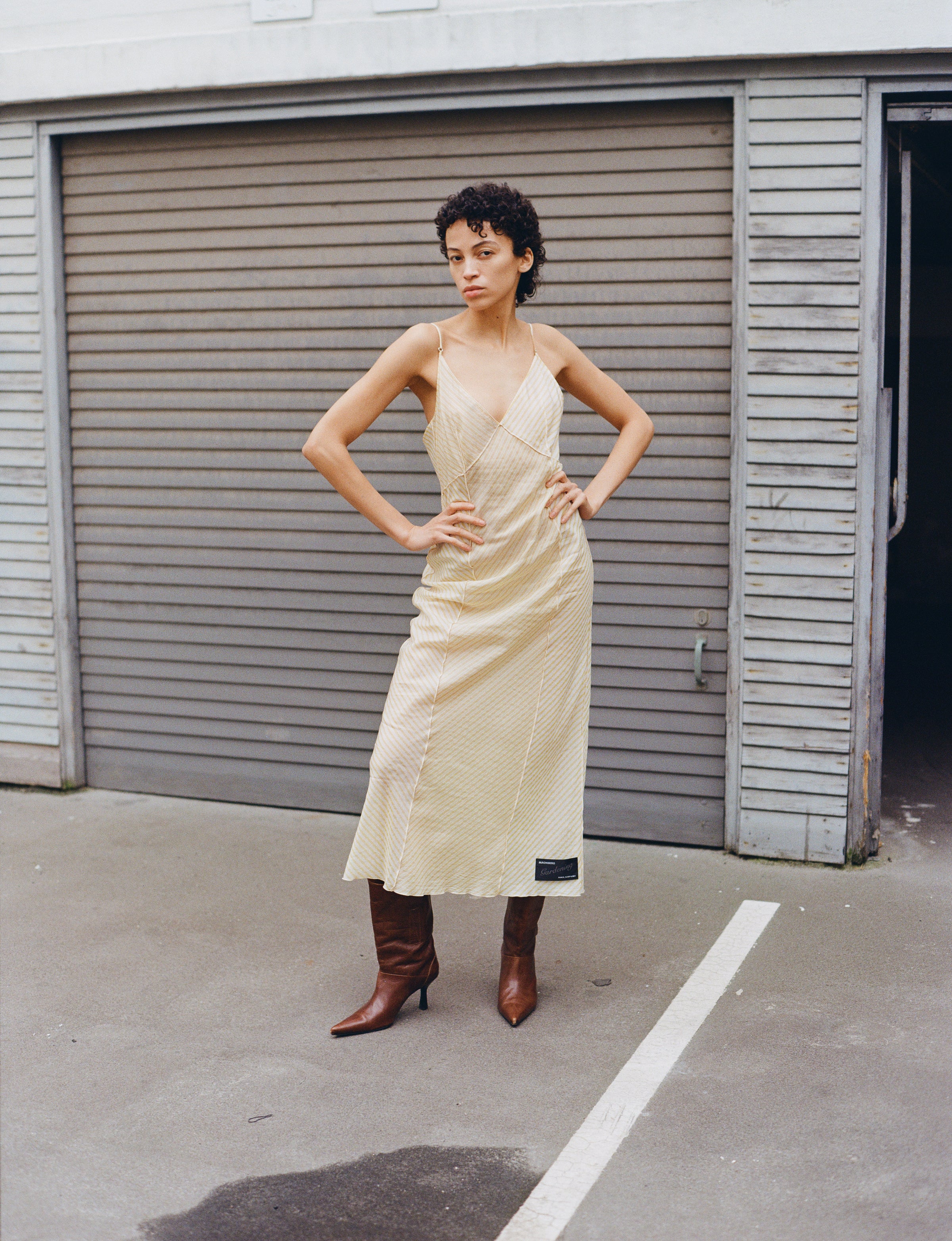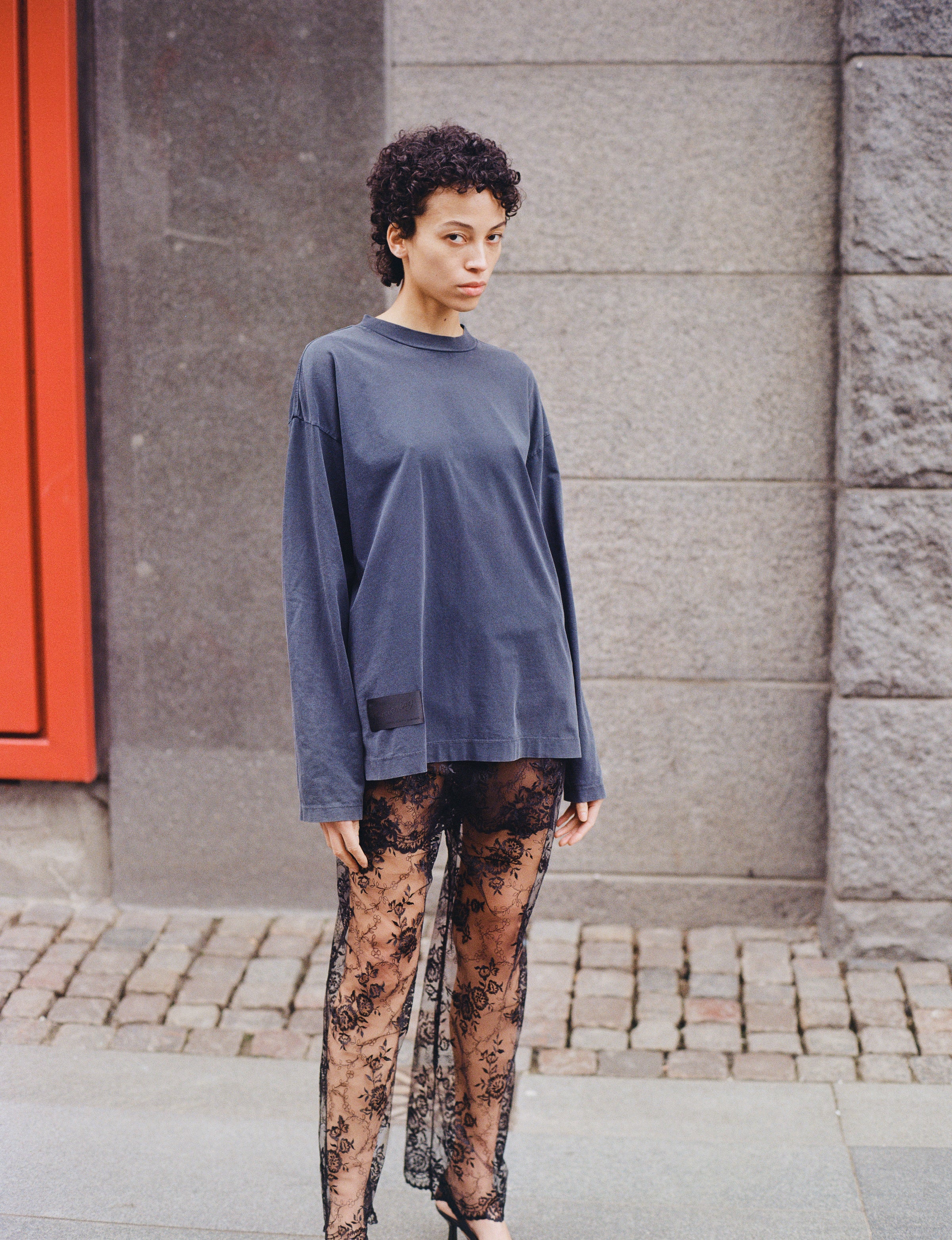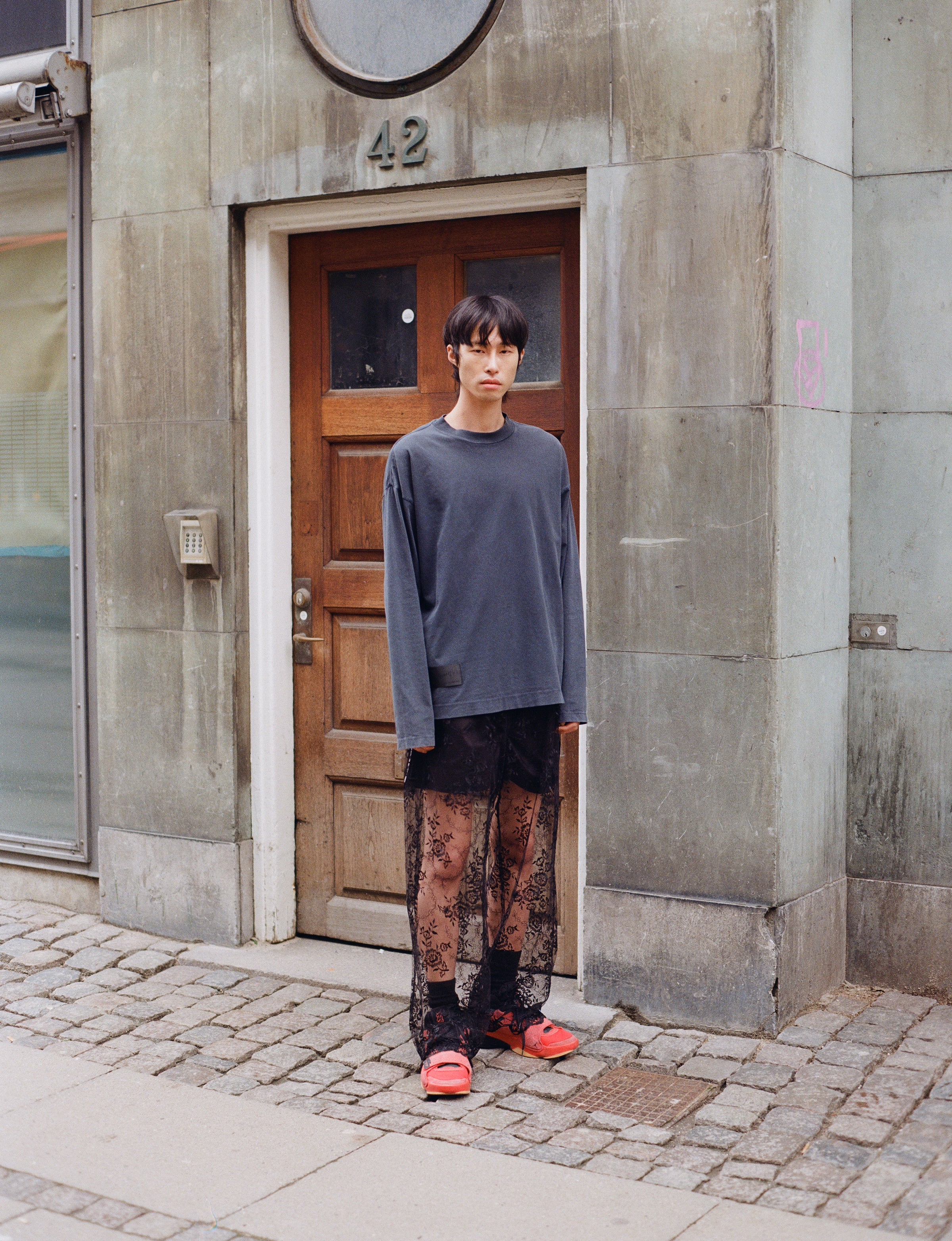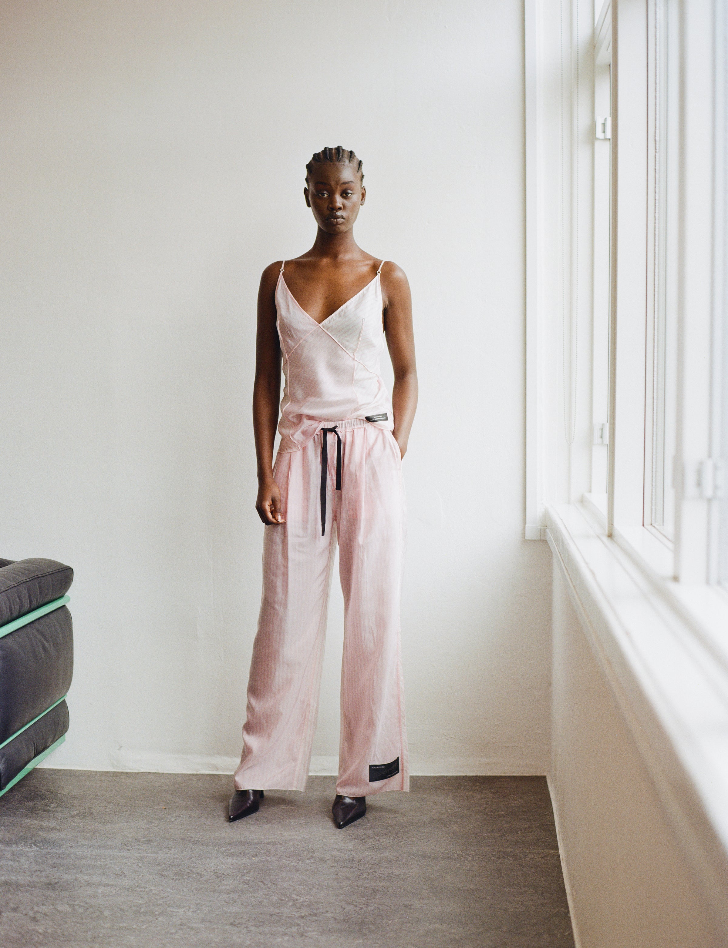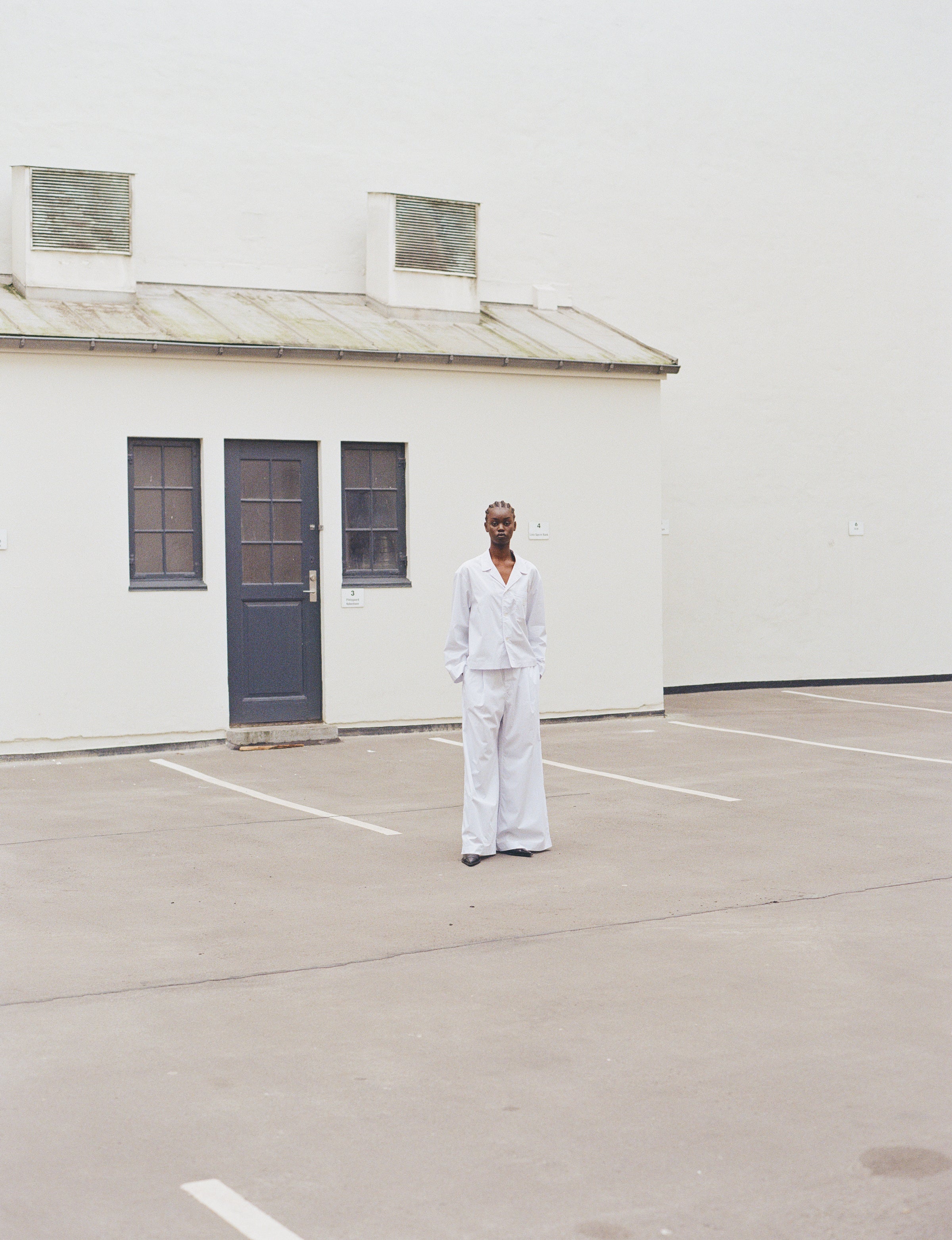”We draw on a lot of references from childhood, work, life, art, street culture. We approached making the Magniberg Home collection with the mindset of appraising every single thing. The fabric, the tailoring, the details. They are clearly tailored, but nicely slouchy. Meticulously made, neat and delicate. Playing with the idea of beauty, you can turn them inside out and they look just as good. We don’t talk about genders as such, rather the shape works across the sizes, you can wear them petite or go up a size. I compare it with a good shape in jeans.”