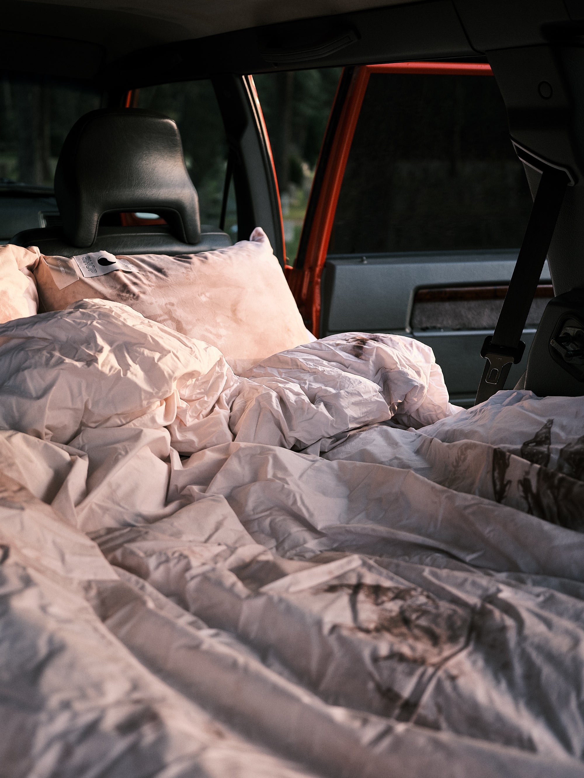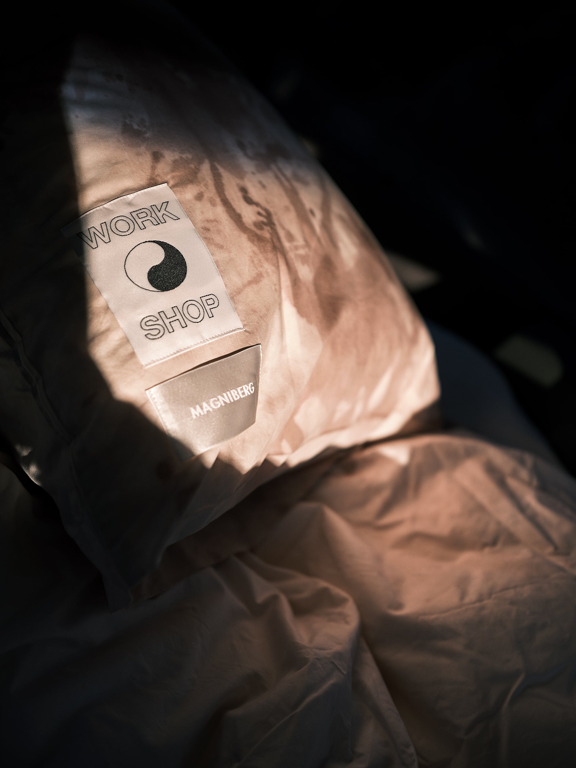 Magniberg meets with Our Legacy Work Shop. Featuring hand dyed bedding inspired by the Photographer Mikael Olsson’s book “Södrakull Frösakull” and pyjamas from dead-stock fabrics.