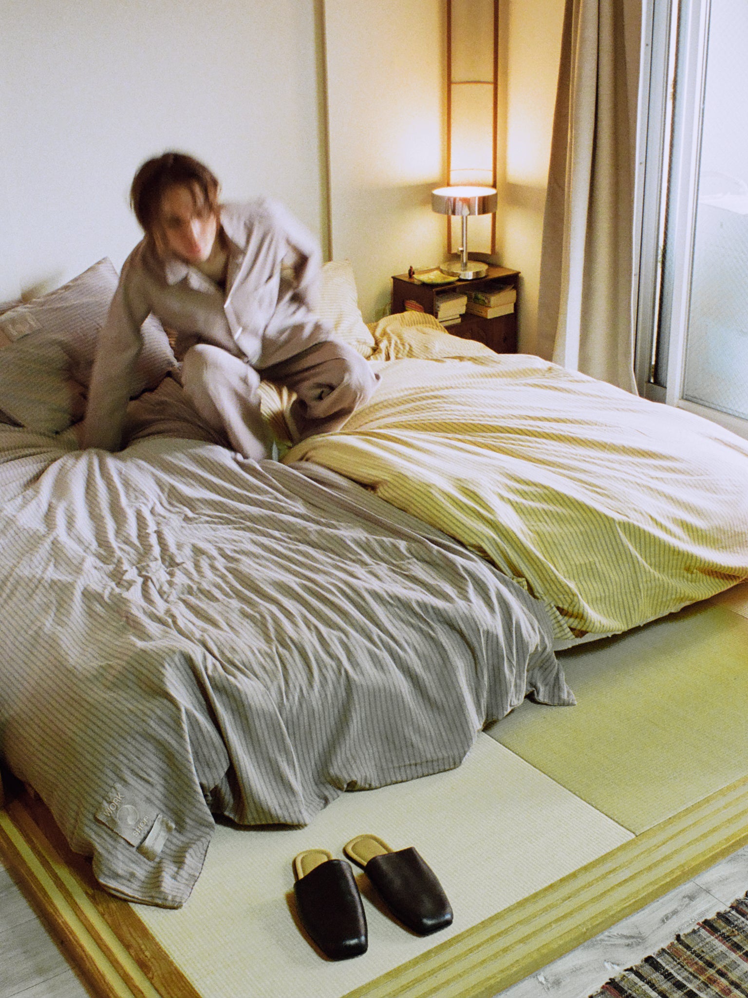 ‘NATURA’ embraces natural dying methods with colorants derived exclusively from plants and minerals — this technique imparts each garment with a sun-faced, lived-in expression — muted in tone and softened in touch.
