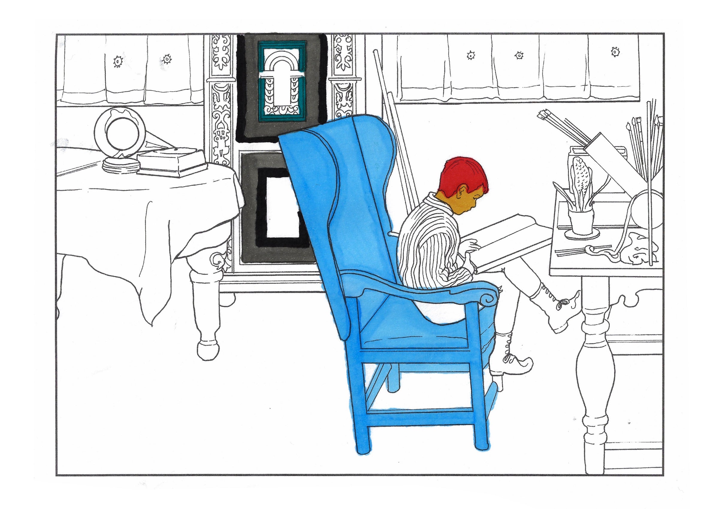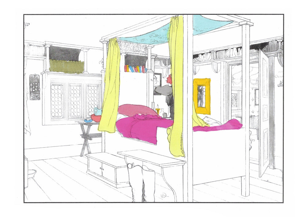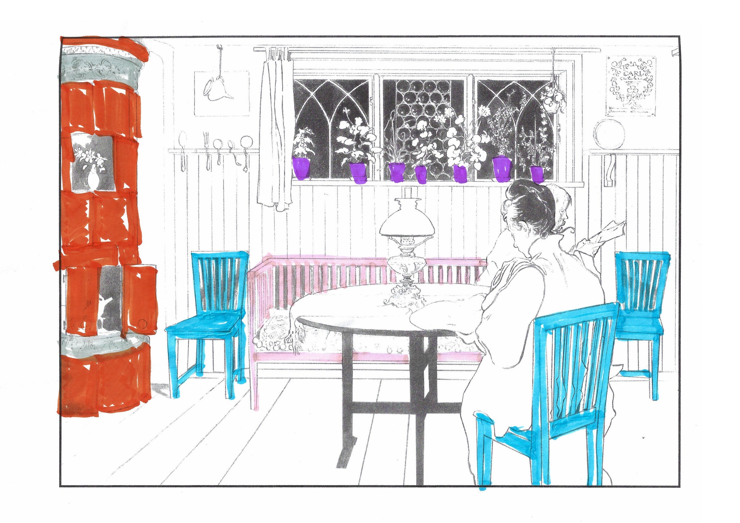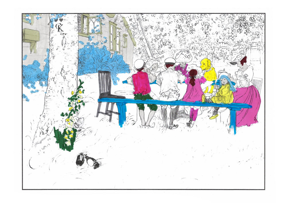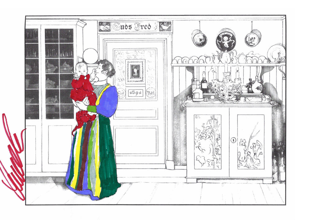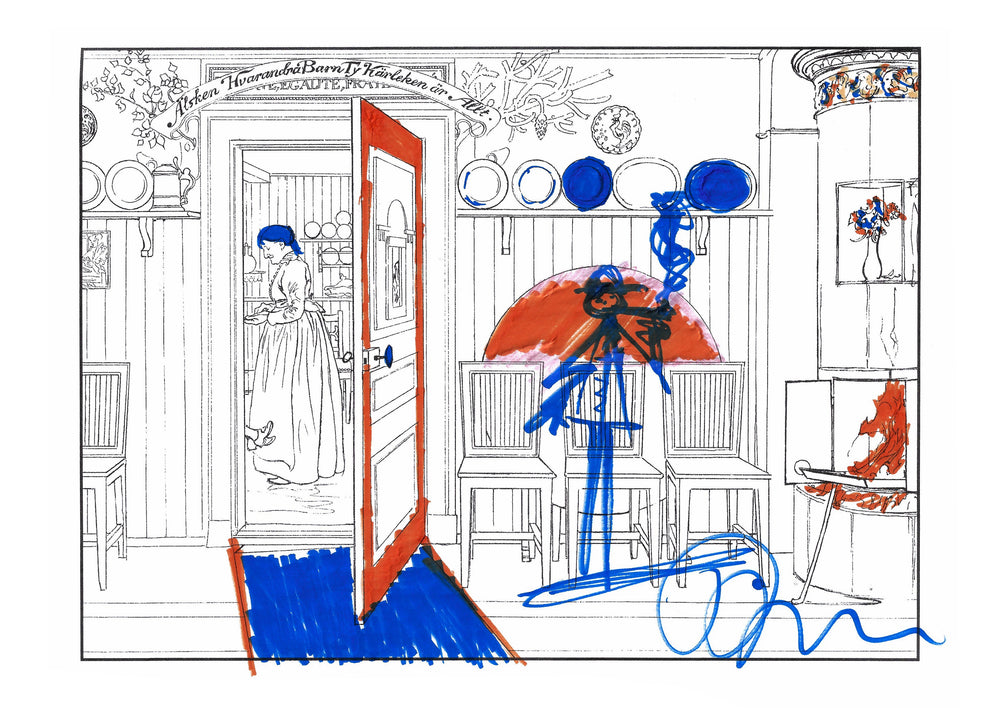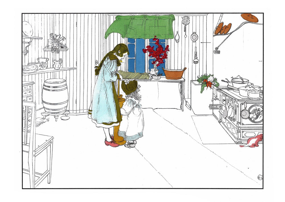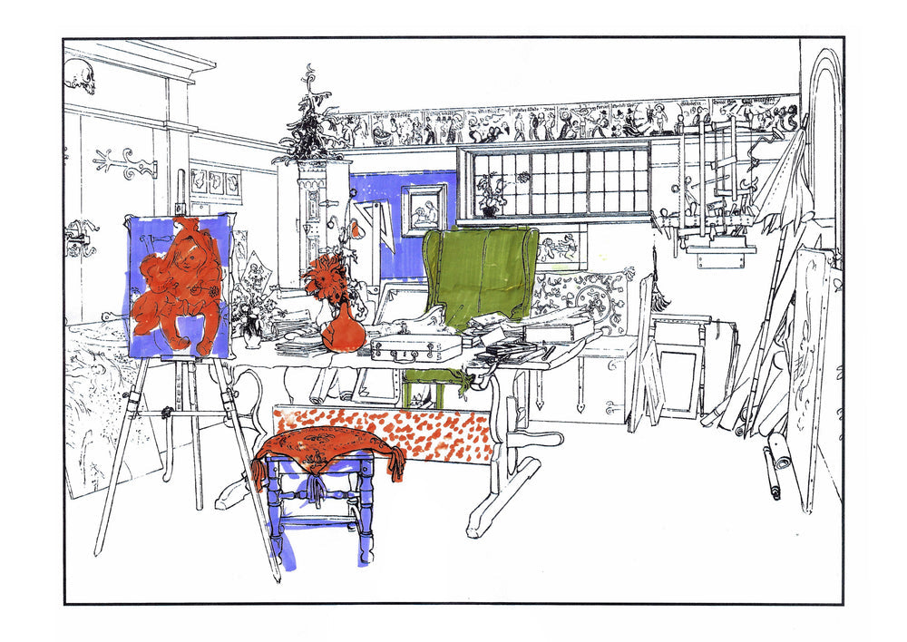 The colouring book features pictures by the late-19th-century Swedish artist Carl Larsson. Magniberg founders Bengt Thornefors and Nina Norgren have always taken inspiration from the life and work of Larsson and his wife Karin - an artist and early interior decorator who filled the family's cottage with flowers, books and painted furniture she designed. Which is how Laird arrived one afternoon a couple of years ago, the colouring book tucked under her arm, a thoughtful gift from a friend.