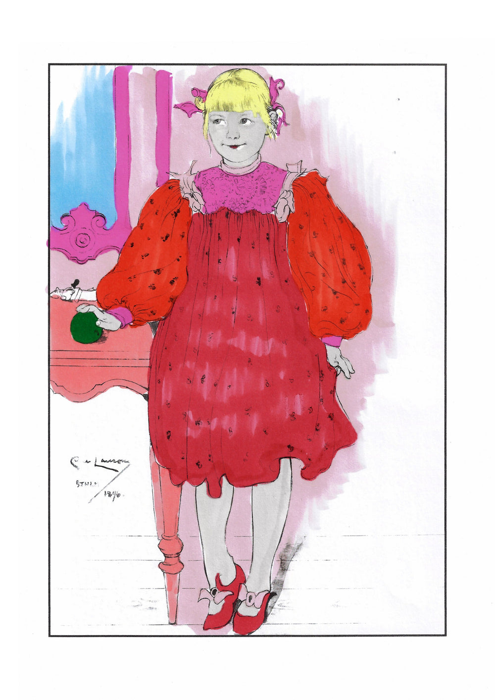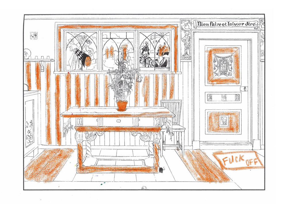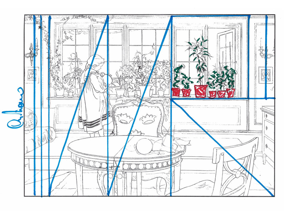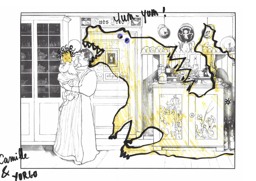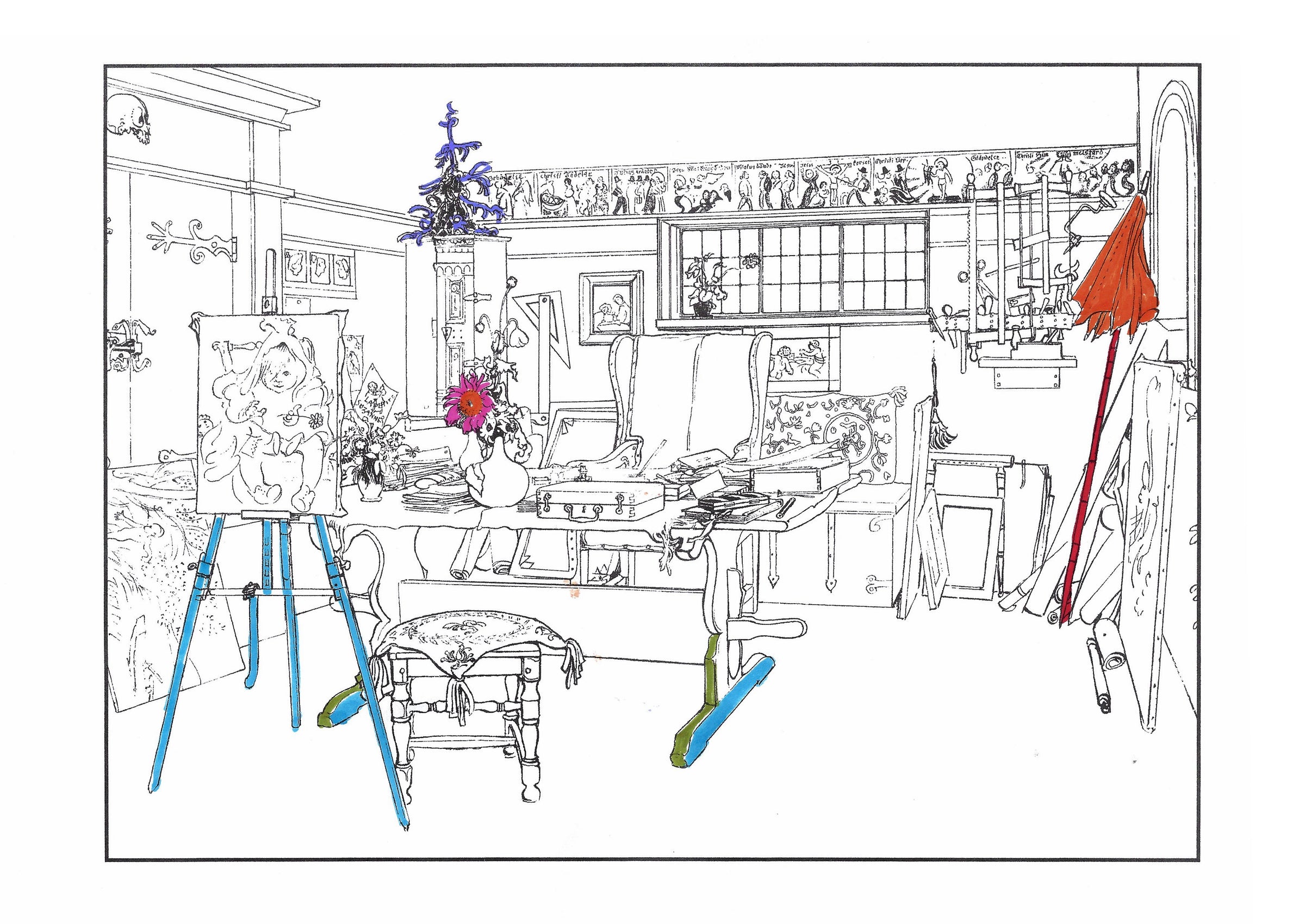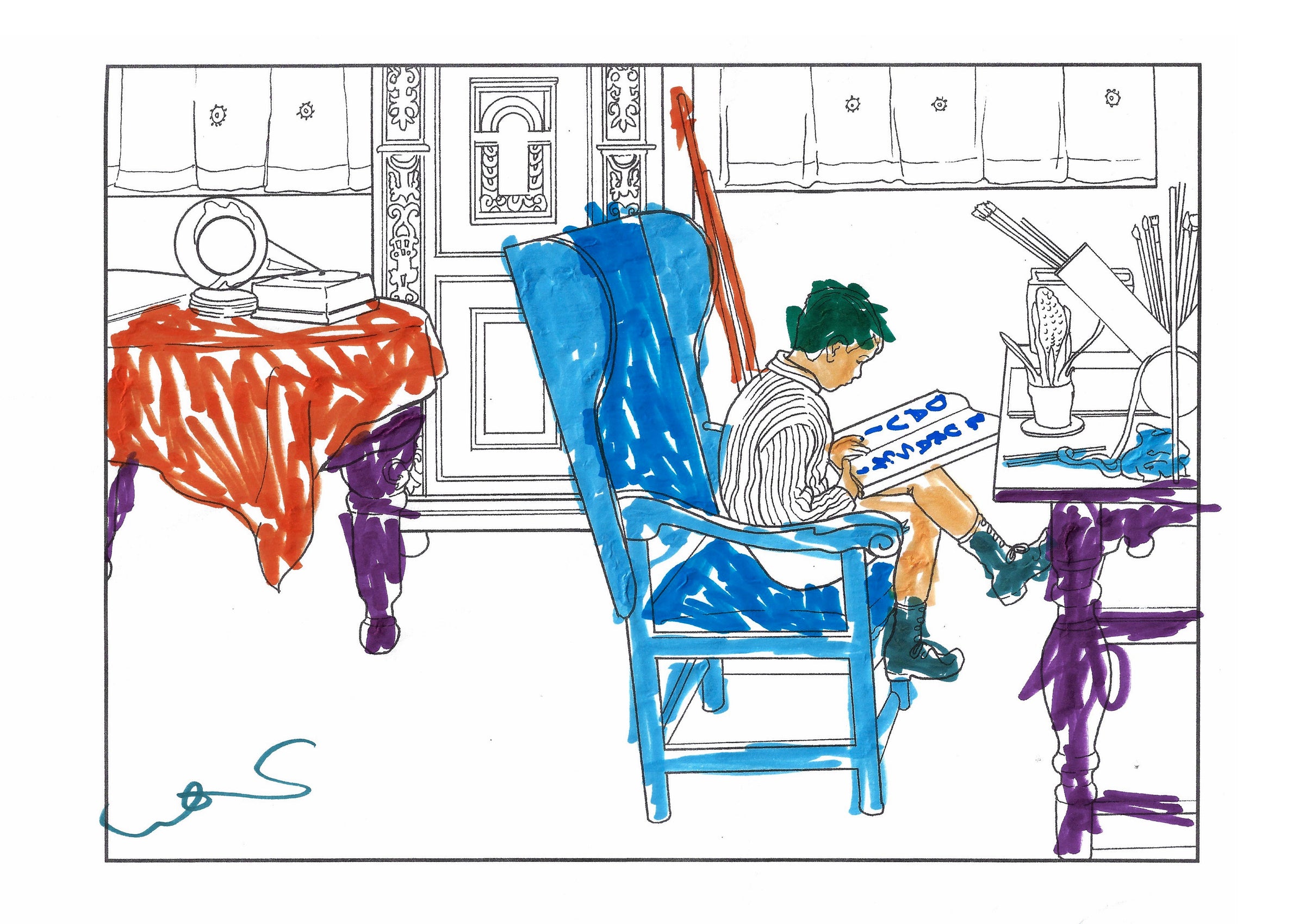 The colouring book features pictures by the late-19th-century Swedish artist Carl Larsson. Magniberg founders Bengt Thornefors and Nina Norgren have always taken inspiration from the life and work of Larsson and his wife Karin - an artist and early interior decorator who filled the family's cottage with flowers, books and painted furniture she designed. Which is how Laird arrived one afternoon a couple of years ago, the colouring book tucked under her arm, a thoughtful gift from a friend.
