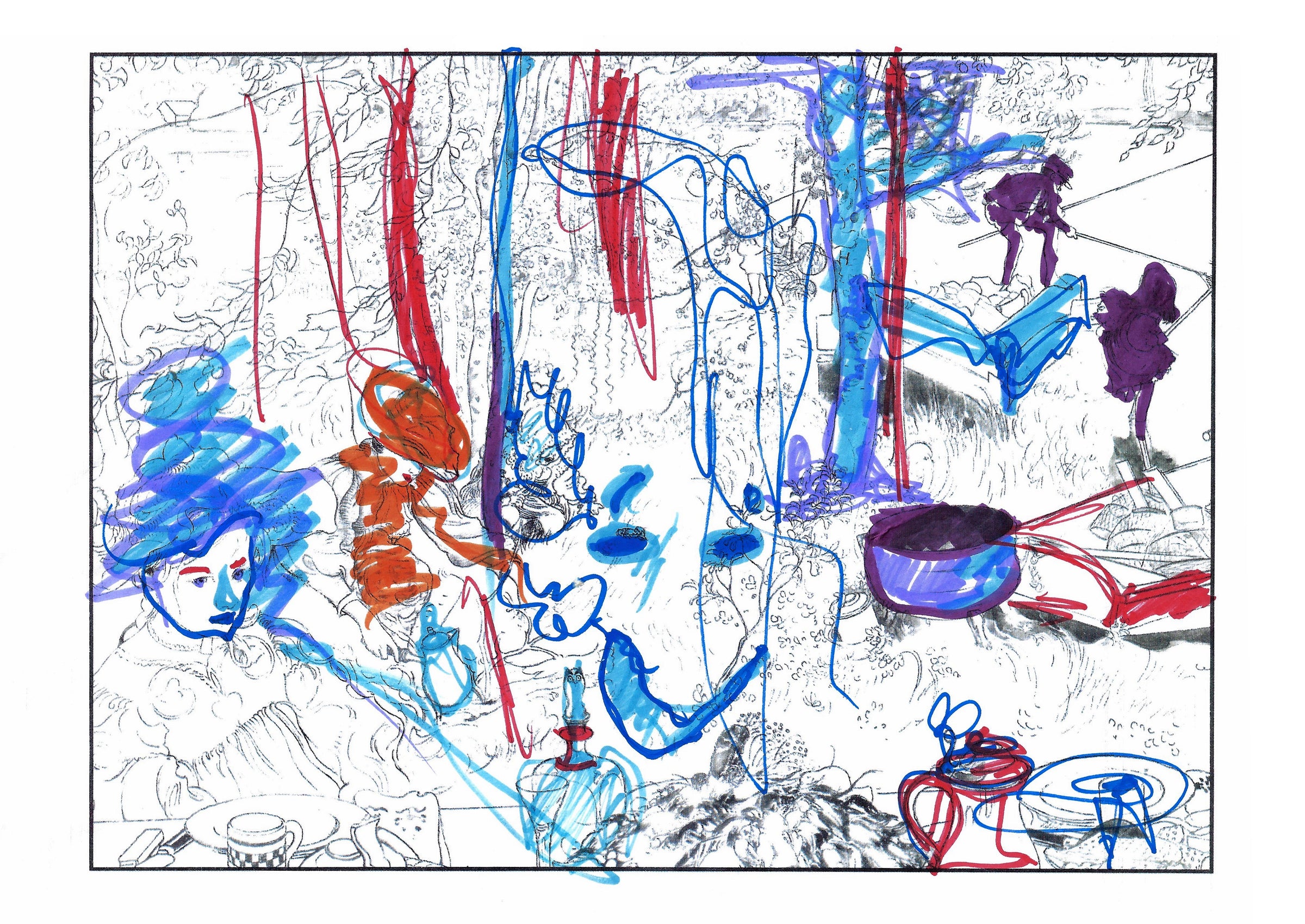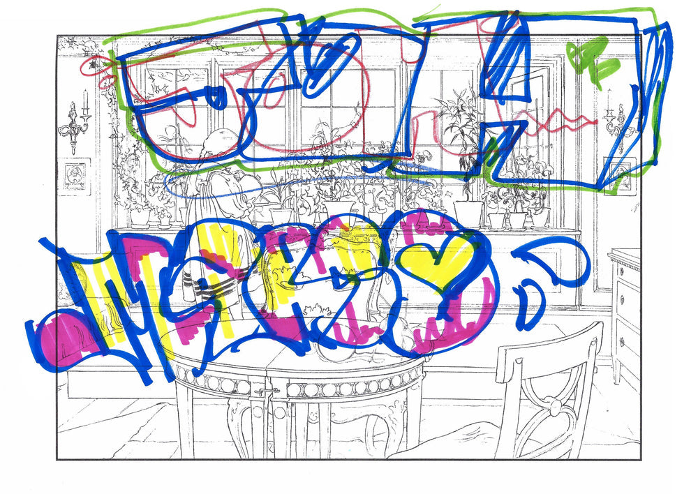 Then, in April last year, on a whim, Bengt reached for the book as he packed for Salone del Mobile – adding a pencil case of his children’s felt tip pens. Over dinner one evening hosted with Apartamento magazine, the book sat open. New friends and old coloured in as they chatted and drank cocktails. The results are as beautiful and eclectic as the company that evening.