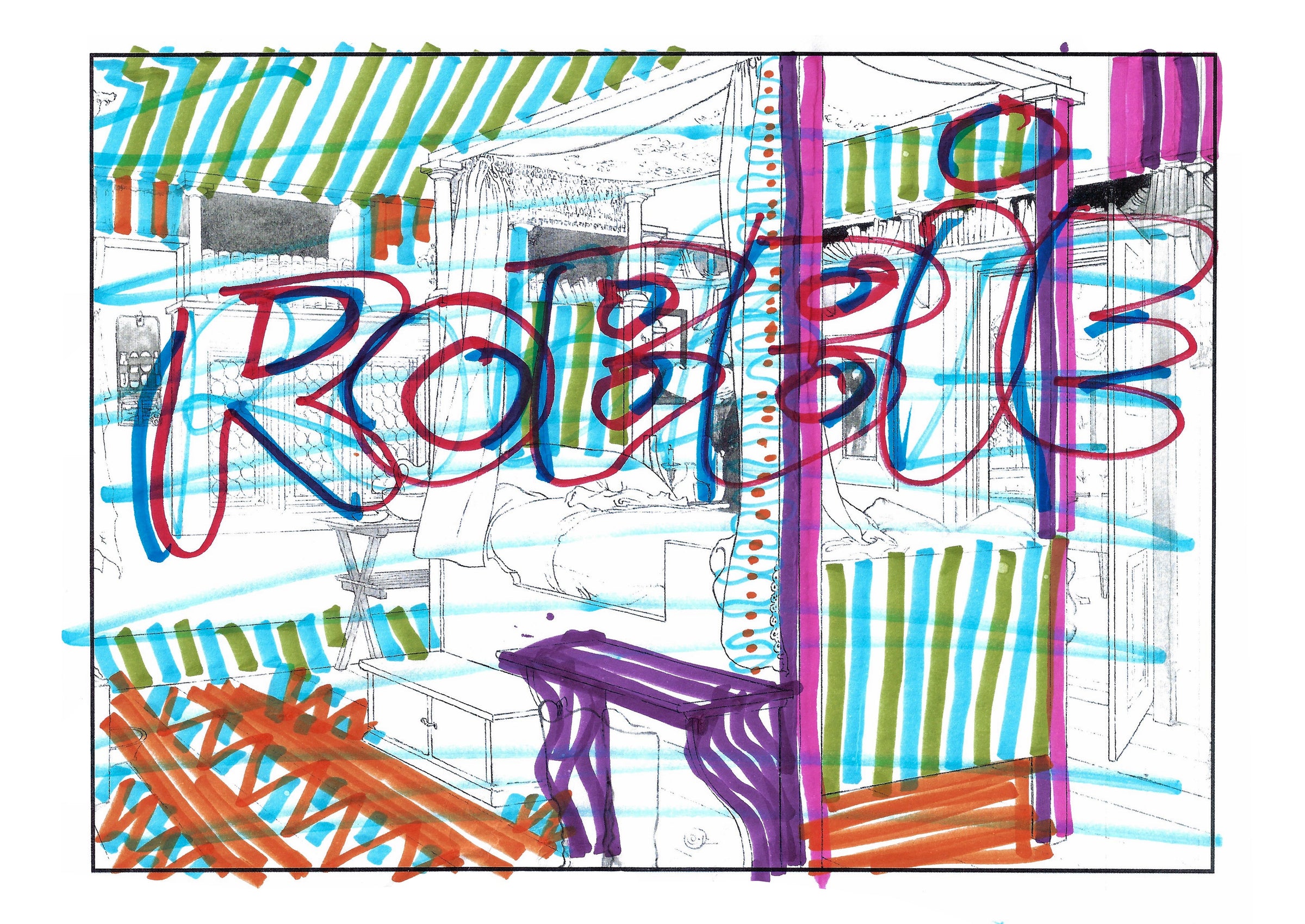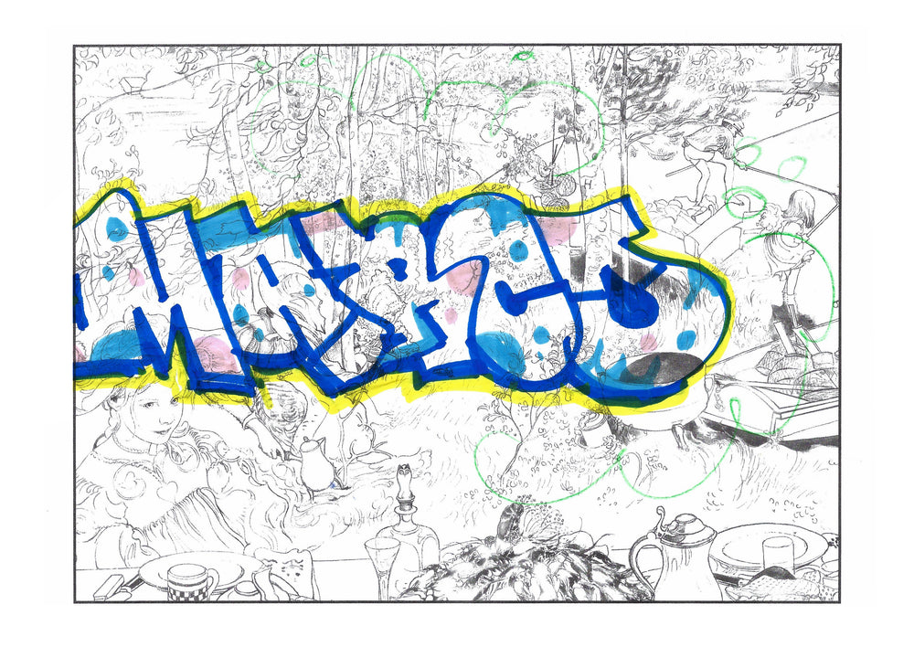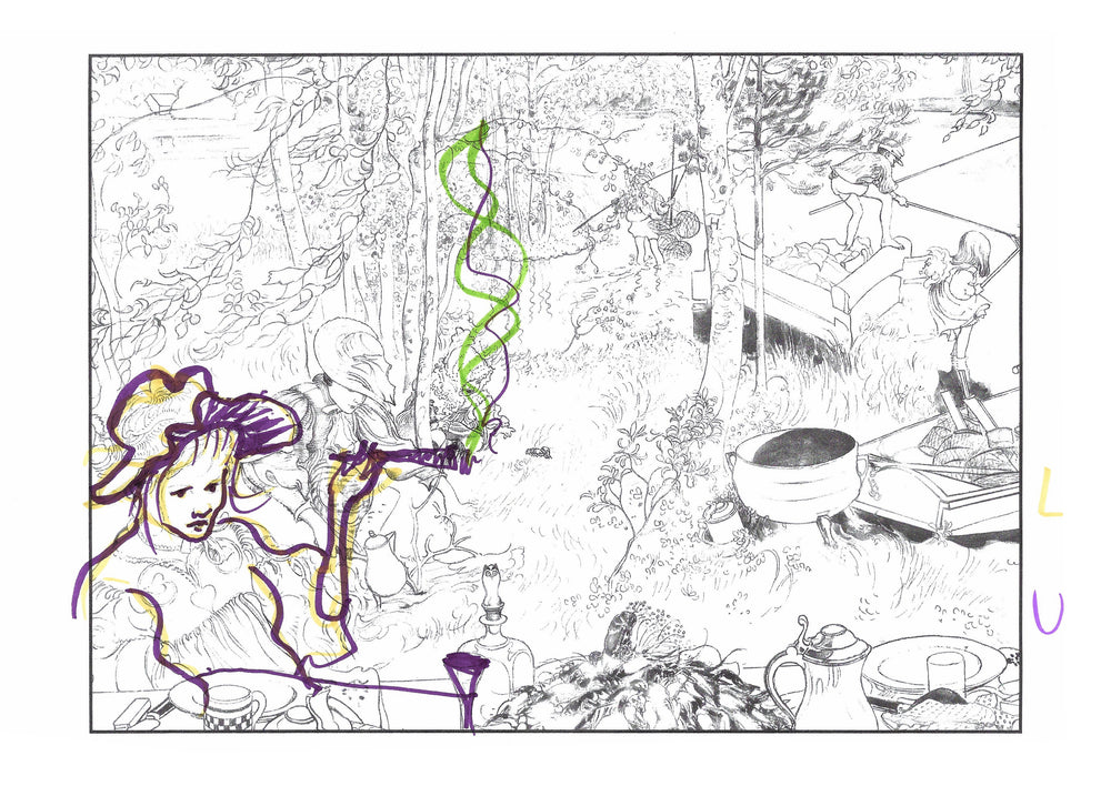 These pages are taken from a colouring book, given to Magniberg by the Vogue writer Laird Borrelli-Persson – and coloured in by friends of the brand during Salone del Mobile Milano last year, idly yet beautifully over dinner.