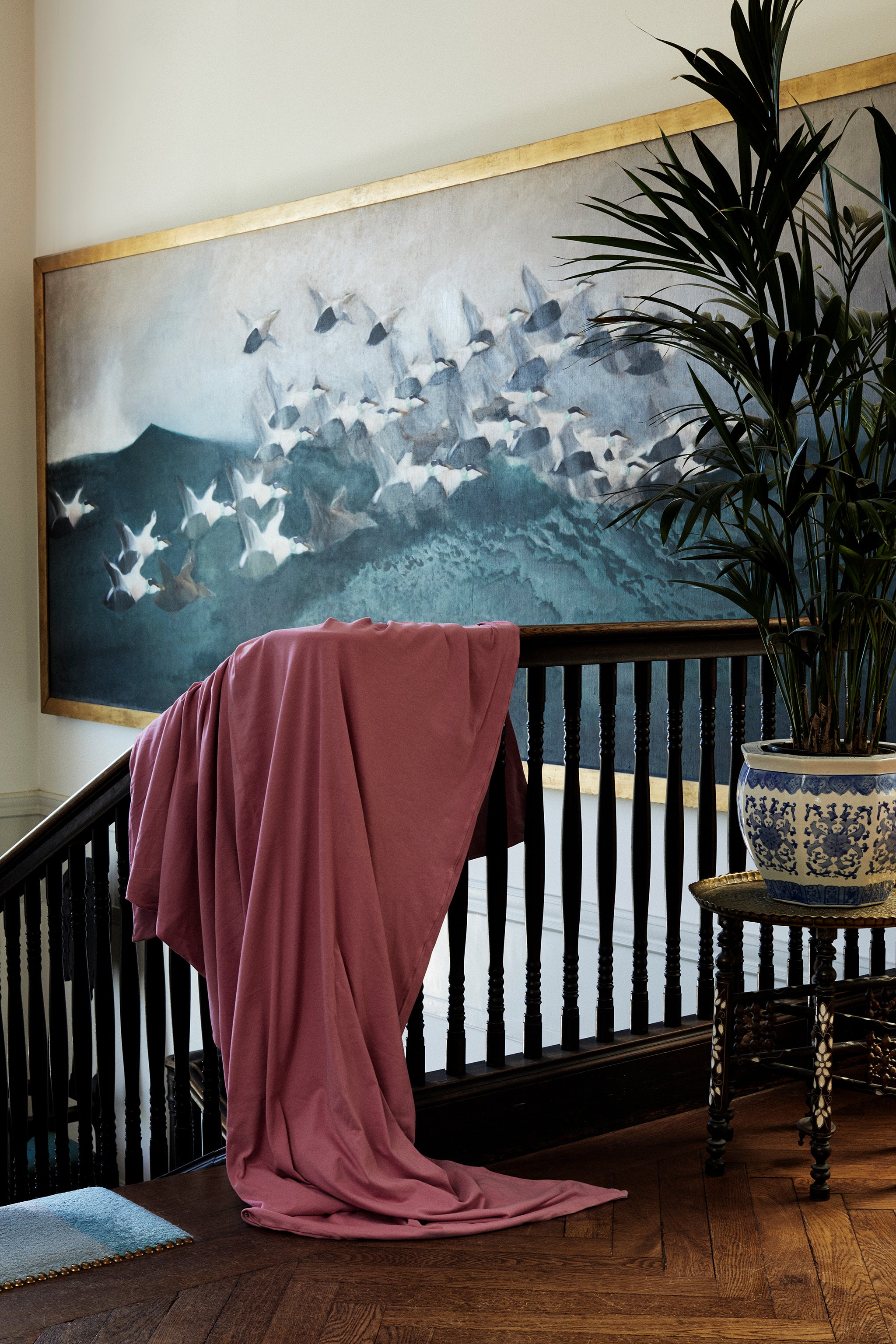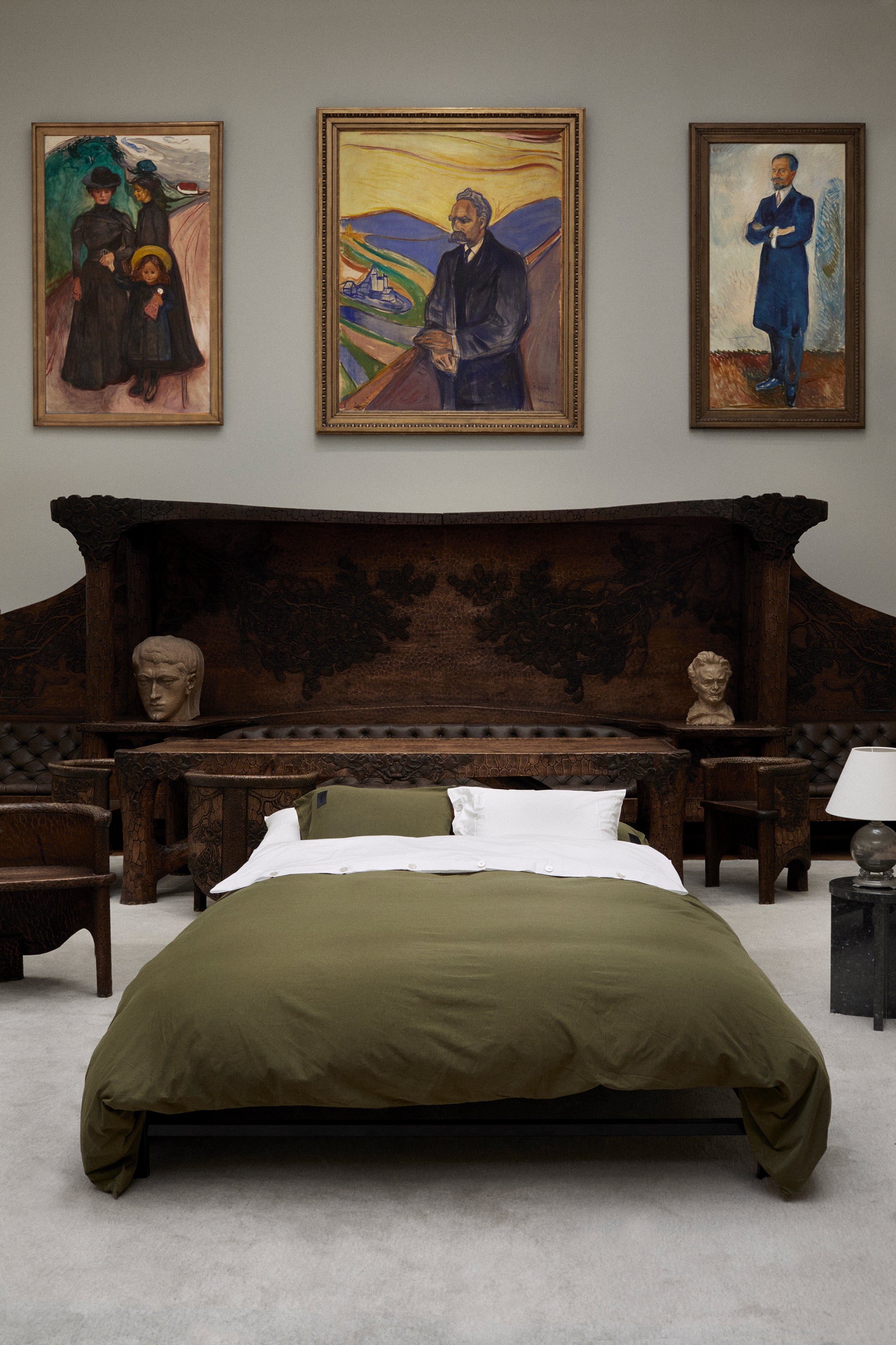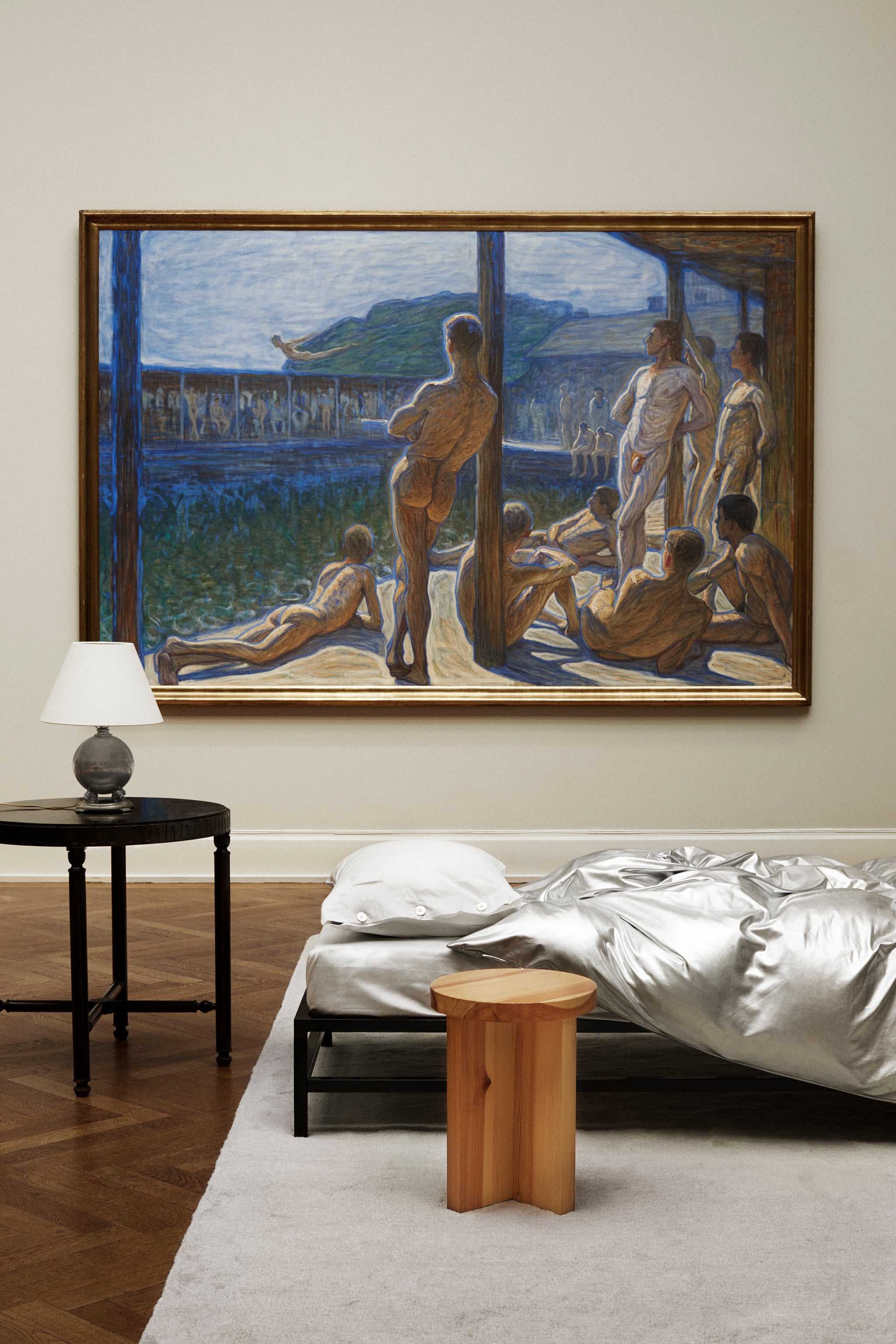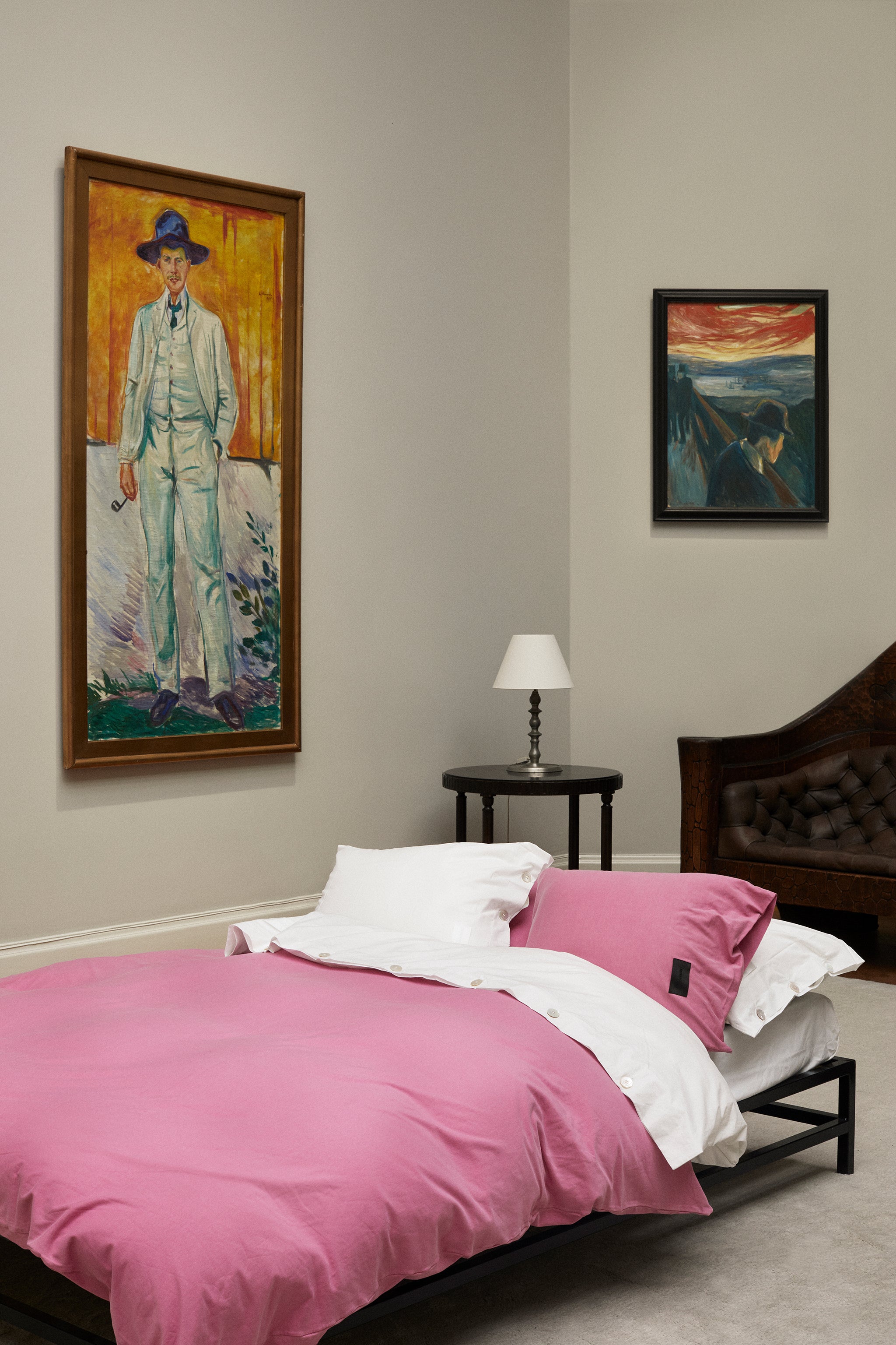 Depicting the bedwear of Magniberg in the scenic spaces of The Thiel Gallery in Stockholm, Sweden, the editorial series juxtaposes Magniberg’s emotionally contemporary designs with artworks of Scandinavian masters that include August Strindberg, Edvard Munch, Anders Zorn, Vilhelm Hammershøi, Eugéne Jansson and more alongside antique interior pieces by Axel Einar-Hjorth, Gustaf Fjaestad, Josef Hoffmann and Astrid Ericsson.